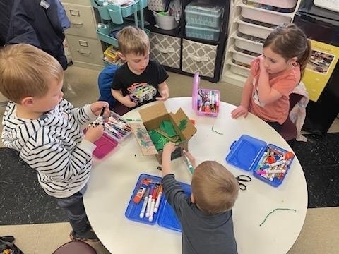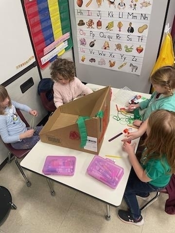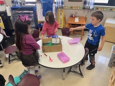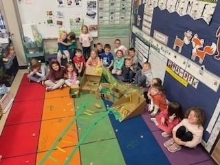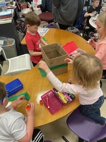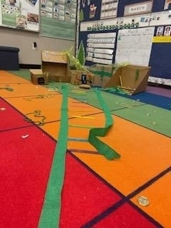 PreK went on a hunt for Leprechaun food for our traps. They worked together in groups to make a trap. This morning we came into a mess and no Leprechaun. What a fun and exciting project!